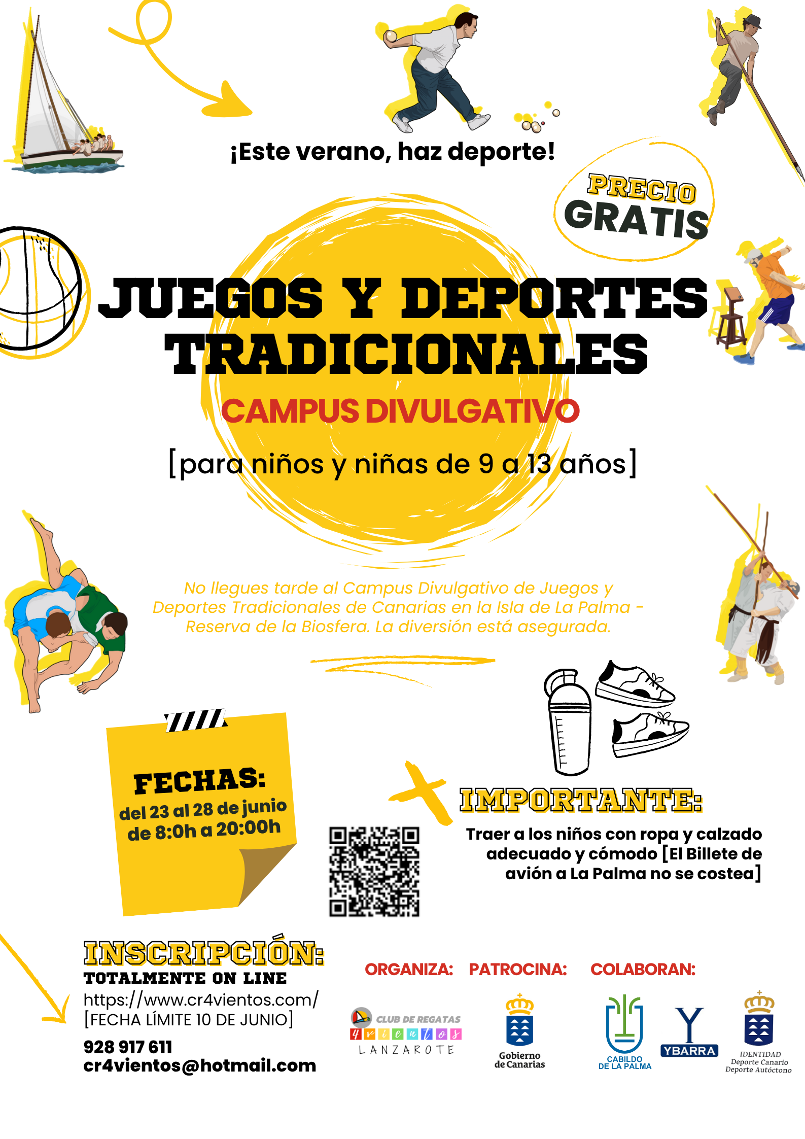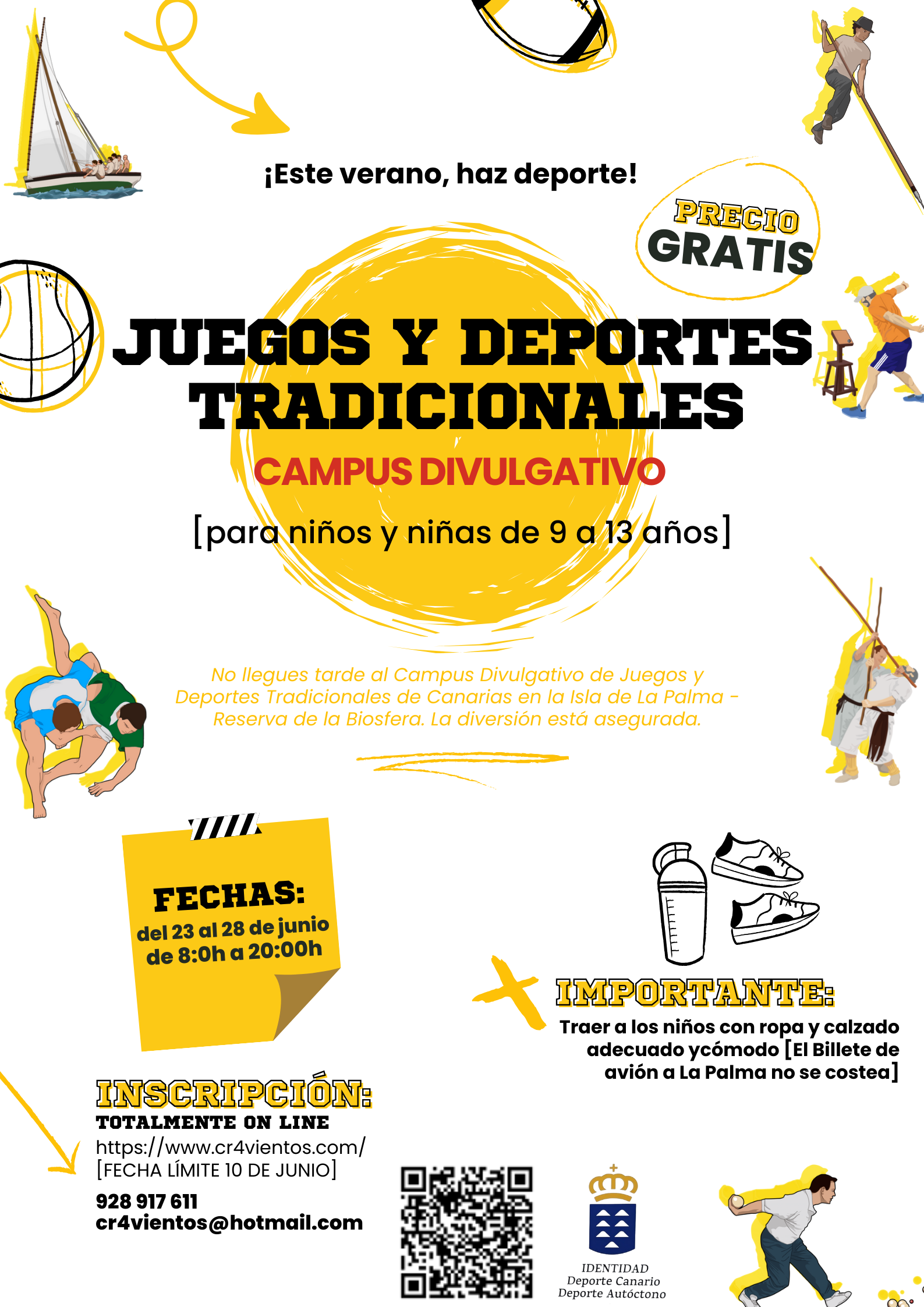 Desde el CR 4Vientos seguimos apostando por el aprendizaje en un entorno de convivencia, naturaleza y diversión. Por eso, nos alegra anunciar una nueva edición de nuestro Campamento Educativo de Juego y Deportes Tradicionales de Canarias, especialmente diseñado para niños, niñas y jóvenes con ganas de pasarlo bien.